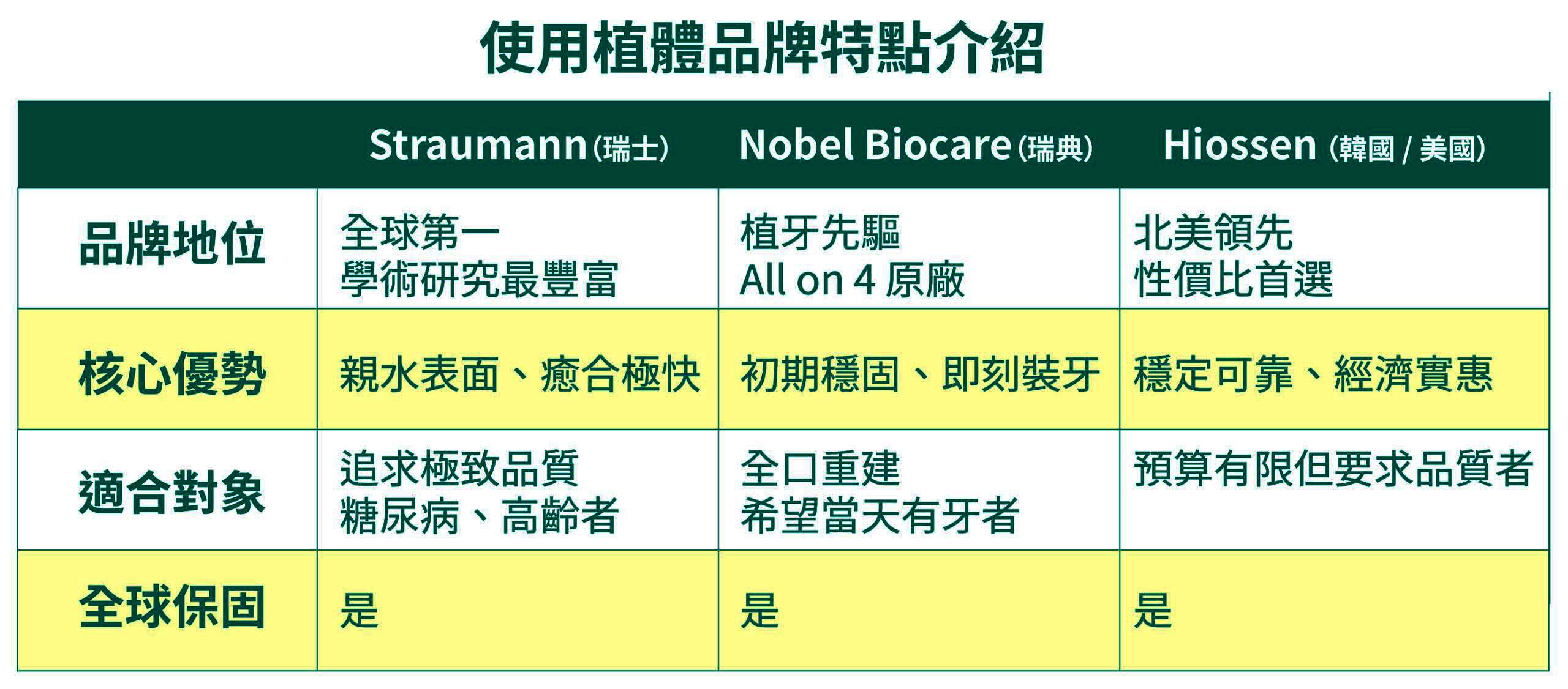 ✓ 只用國際知名的植體品牌,擁有豐富的醫學研究支持,使用表現穩定。