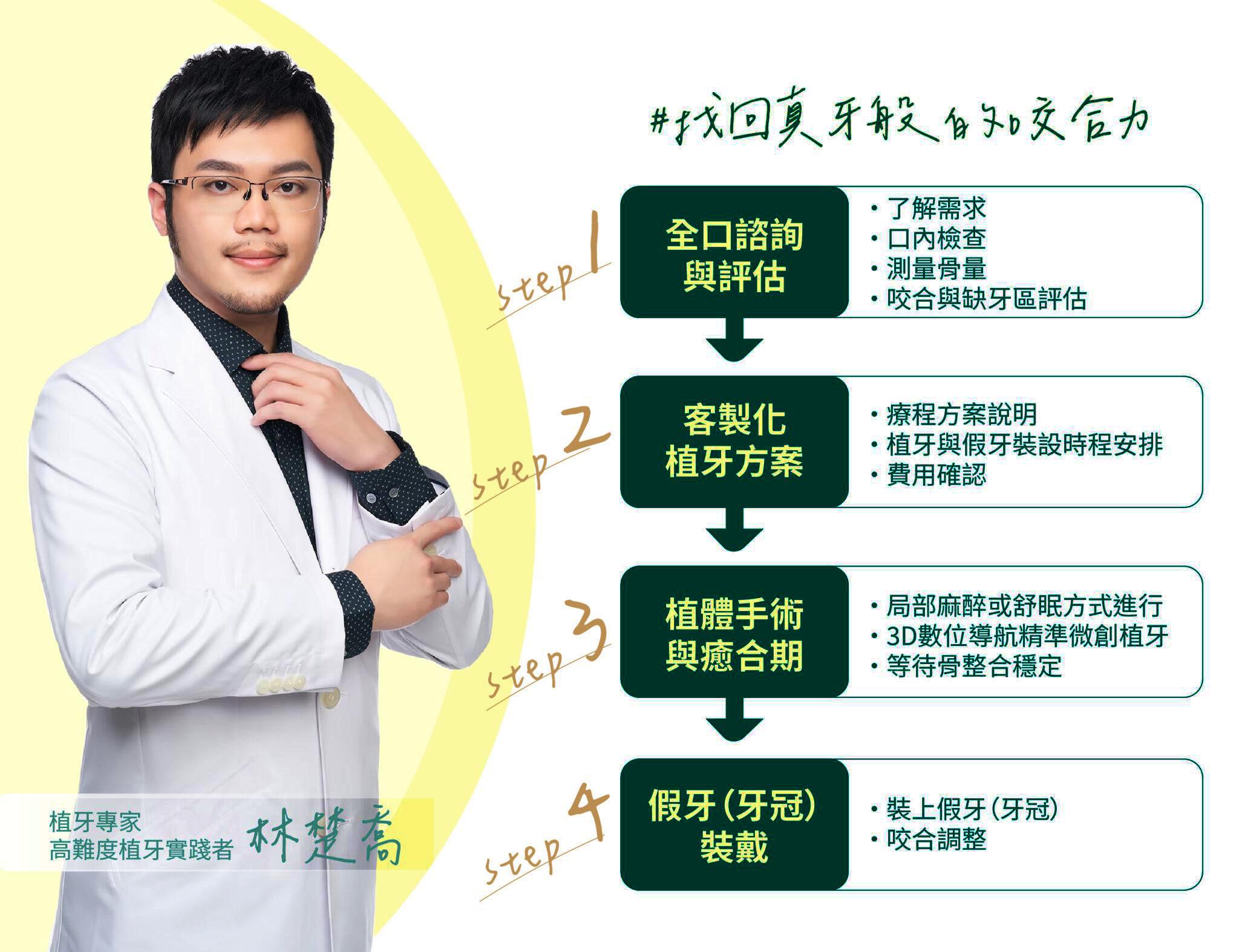 「植牙是一項精密工程,而我的職責是確保這項工程的結果,是能讓牙齒伴隨患者更久更長。必須持續進步,這樣才能幫助到更多需要的人。」——林楚喬院長