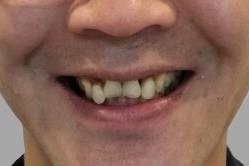 如上圖,破損以後的牙齒看起來特別短,凹凸不平又容易刮到臉頰或舌頭。