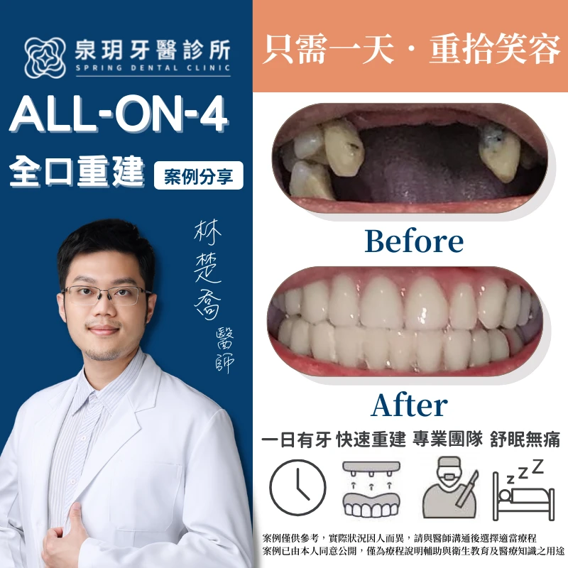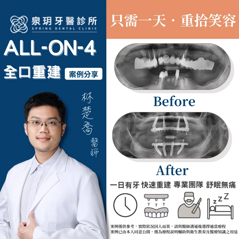 「很多人以為自己牙齒爛了,就只能一輩子忍耐。但醫療其實可以帶來選擇權。我見過太多人從不敢笑,到能自然開懷地講話、吃飯,All-on-4 就是改變的起點。」