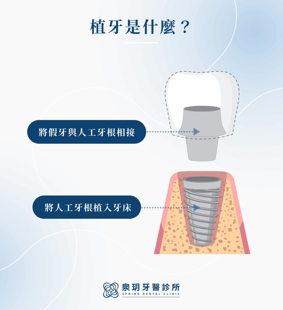 植牙是一種外科手術,其中一個牙科植體被植入到牙槽骨中,作為假牙或牙橋的固定基礎。