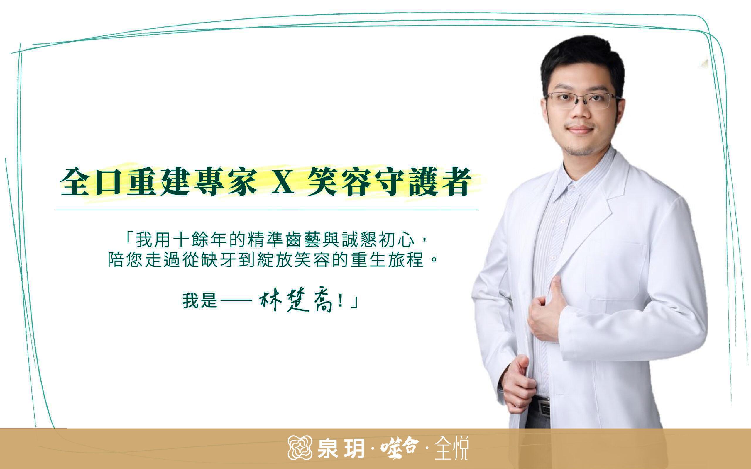 「我最常說的一句話是『一定會治療到讓您可以放心使用。』看到就診者從一開始的遮遮掩掩,到最後能大口吃牛排、開懷自信笑,那種發自內心的喜悅,就是我身為牙醫師最幸福的時刻。」—— 林楚喬院長