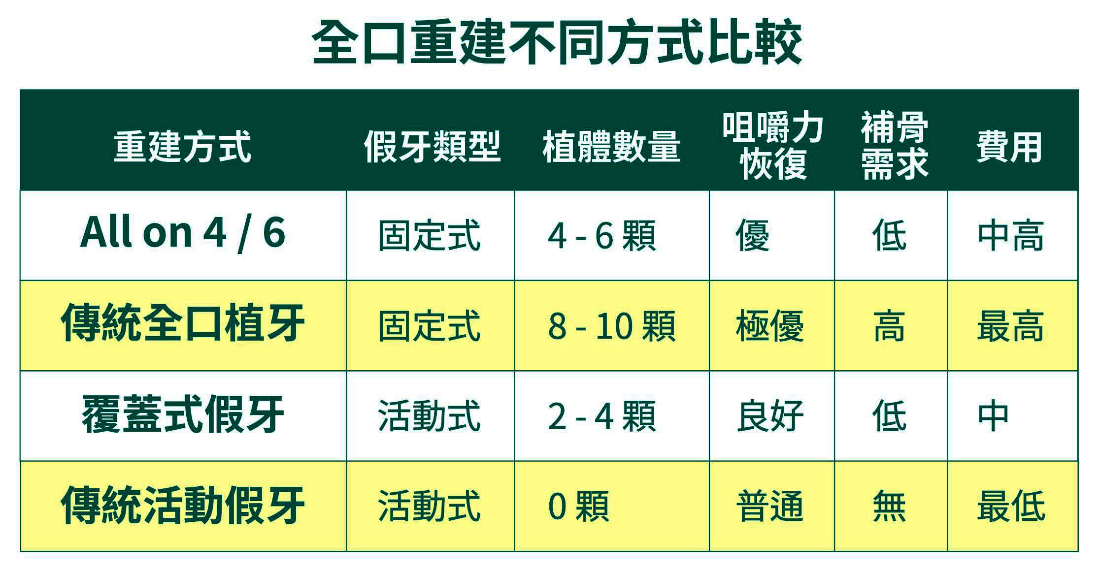 全口重建不是單純補牙,而是結合假牙膺復、植人工牙根、牙周治療及咬合重建的綜合性精密口腔規劃。目的是為了恢復您牙齒的咬合功能及美觀,找回穩定而能長期安心使用的口腔狀態。